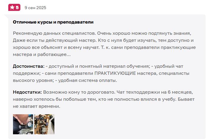 Полный набор знаний и навыков: пайка, заправка, диагностика, электроника